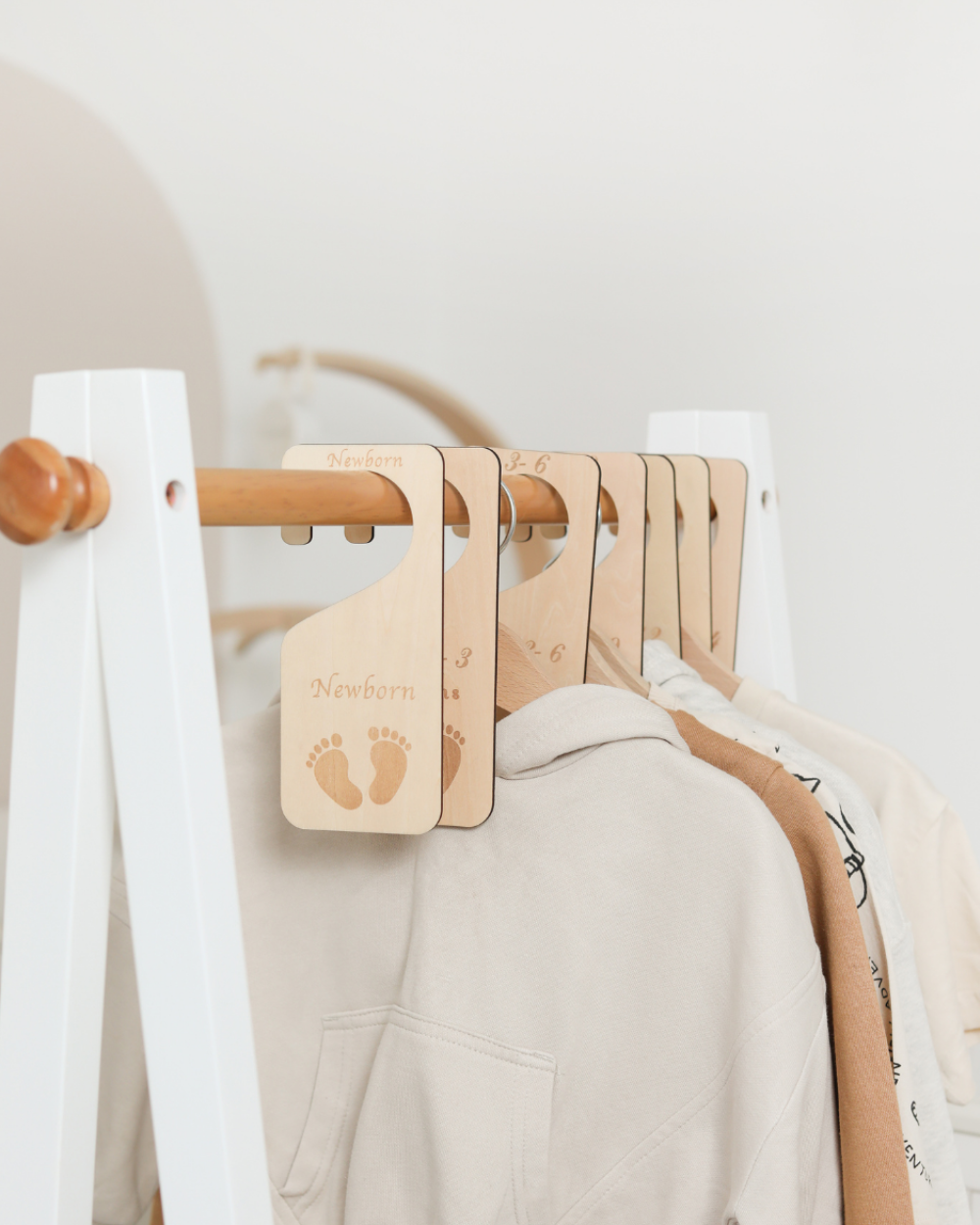 Featuring Baby Feets design our wooden baby clothes organiser divider ensures a tidy closet for your little one. Crafted from ethnically sourced wood, it's sturdy and adds natural elegance to nurseries. Designed for standard closet rods, it efficiently sorts clothes from newborn to 24 months. Perfect for new parents or baby showers, this stylist divider is a practical and thoughtful gift, offering lasting organisation and style.