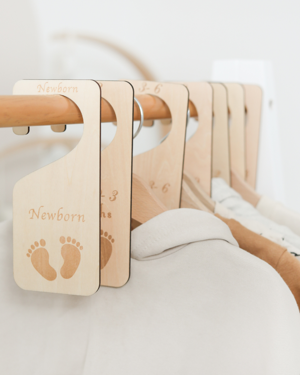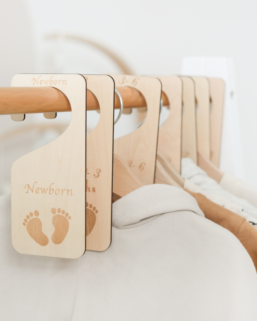 - Includes 7 hangers: newborn, 0-3 months, 3-6 months, 6-9 months, 9-12 months, 12-18 months, 18-24 months