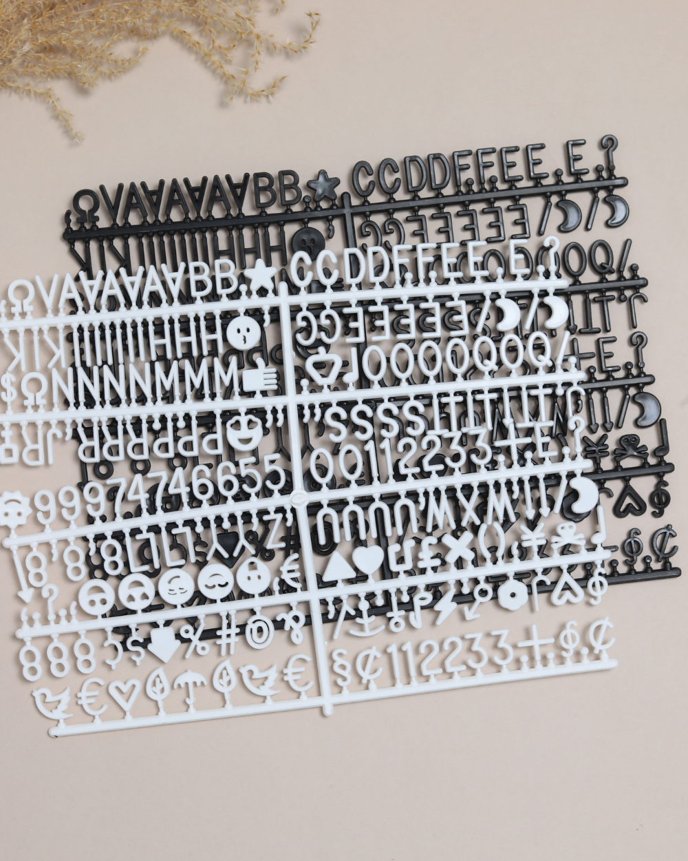 All felt letterboards come with 2 sheets of WHITE 170 letters and symbols except white letterboard will come with 2 sheets of BLACK letters and symbols.