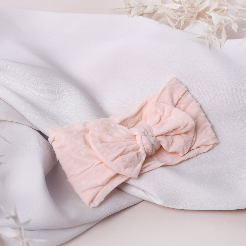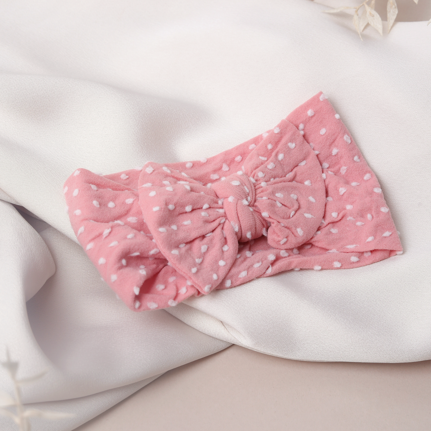 Our beautiful polka dot headbands, featuring a charming bow, are designed to make a gentle yet stylish statement. Made from soft and stretchy material, these headbands are ideal for spring outings and add a delightful pop to your baby's ensemble.